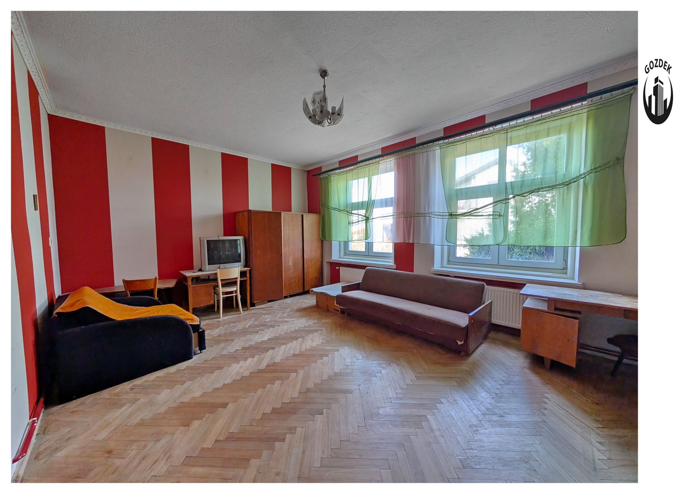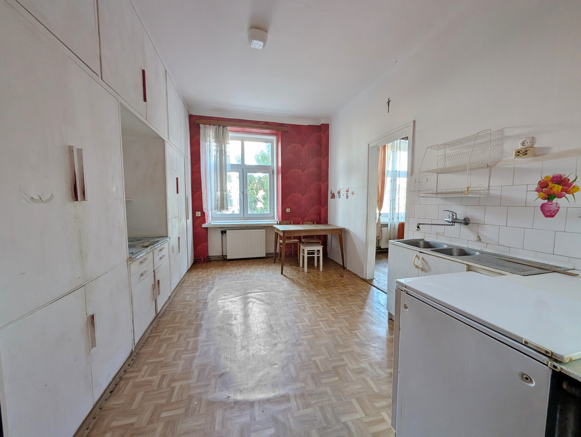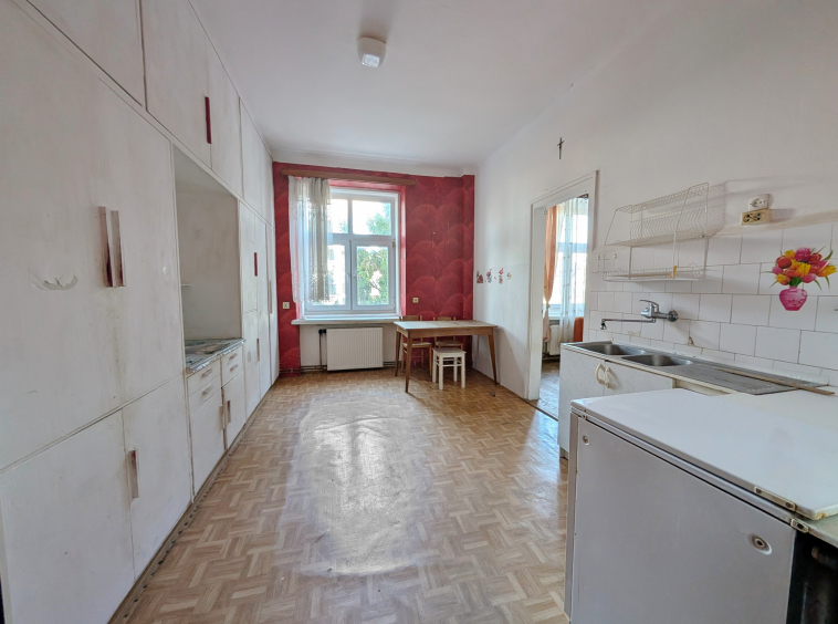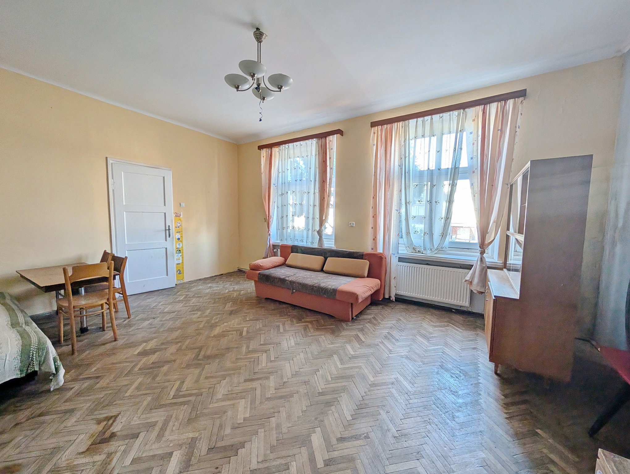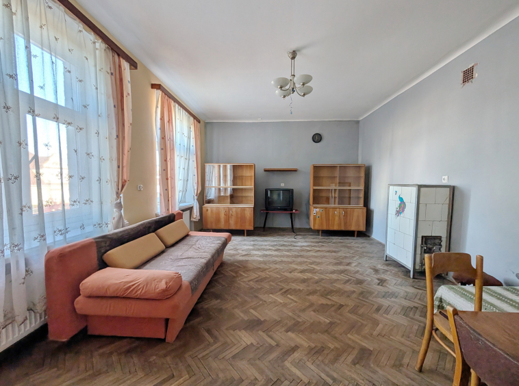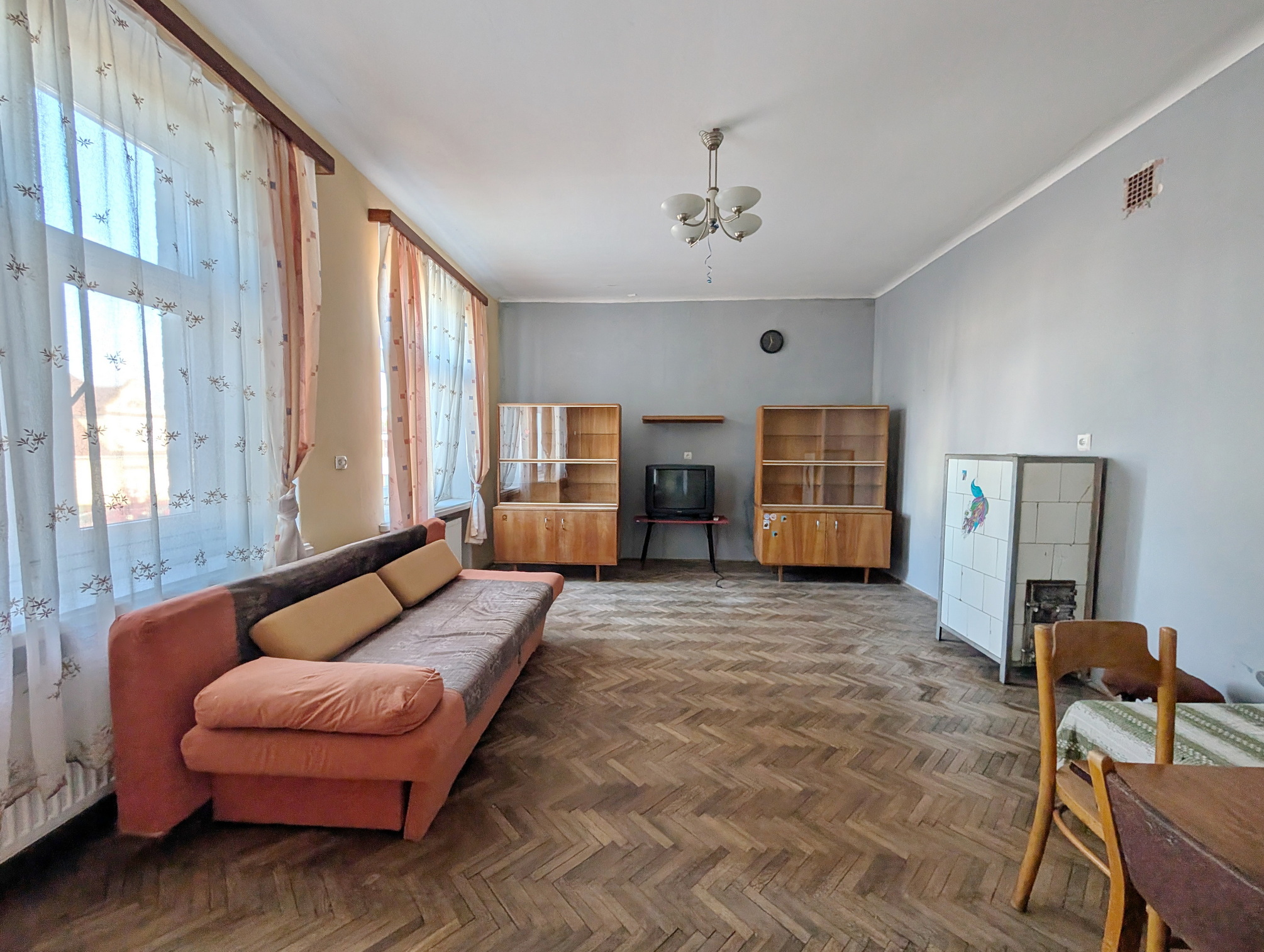 Mieszkanie do generalnego remontu. Na podłogach parkiet, niewymienione istalacje, okna plastikowe (około 20-letnie).