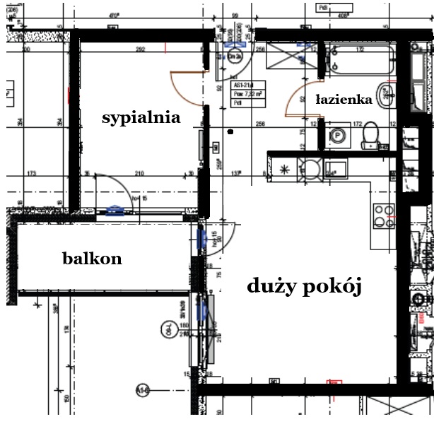 – duży pokój z aneksem kuchennym (22,4mkw)