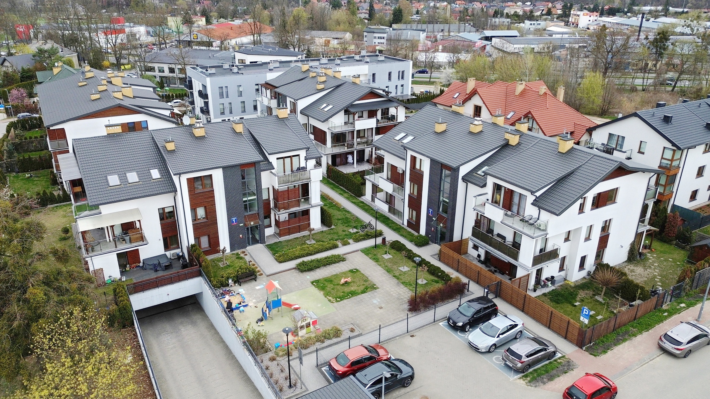 Blok z 2018r. na zamkniętym osiedlu z placem zabaw.