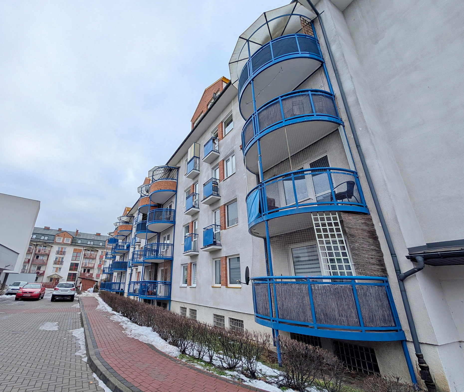 – duży pokój (17mkw) z wyjściem na półokrągły balkon